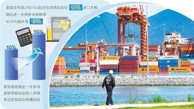 多边贸易规则再遭削弱,预期被打破导致系统失稳。国际贸易体系稳定的基石,是以世贸组织为核心的多边主义规则体系,包括最惠国待遇、关税约束、非歧视原则以及争端的法律解决。特朗普政府无视最高法院裁决,执意推动普遍性、临时性、单边性关税政策,绕开了世贸组织谈判与争端解决机制,将“例外条款”常态化,并且向外界释放出规则可被大国随时随意暂停的消极信号。关于关税是否会延长、是否会再上调以及是否会豁免特定国家和行业等一系列不确定性,导致企业无法做中长期投资决策,全球价值链配置被迫短期化、碎片化。以往,企业有理由相信,即便存在贸易摩擦,最终也会回到规则框架内解决,但特朗普政府关税政策释放的信号则是结果取决于政治力量而非法律规则。国际贸易体系中,大型经济体的克制是重要稳定器,但特朗普政府的措施,将通过错误示范使其他国家更容易效仿其采取单边措施,加速贸易政策从经济工具沦为外交或安全工具。美削弱破坏多边贸易规则,将使发展中国家成为最大受害者。发展中国家往往出口集中度高、抗冲击能力弱,无法通过补贴或转移市场快速消化关税冲击,更依赖规则稳定而非谈判能力维持自身的贸易利益。特朗普政府的关税霸权主义,将导致贸易收益向发达经济体和区域集团集中,全球贸易的发展红利被压缩,南北发展差距进一步扩大。(经济日报记者 梁 桐)
